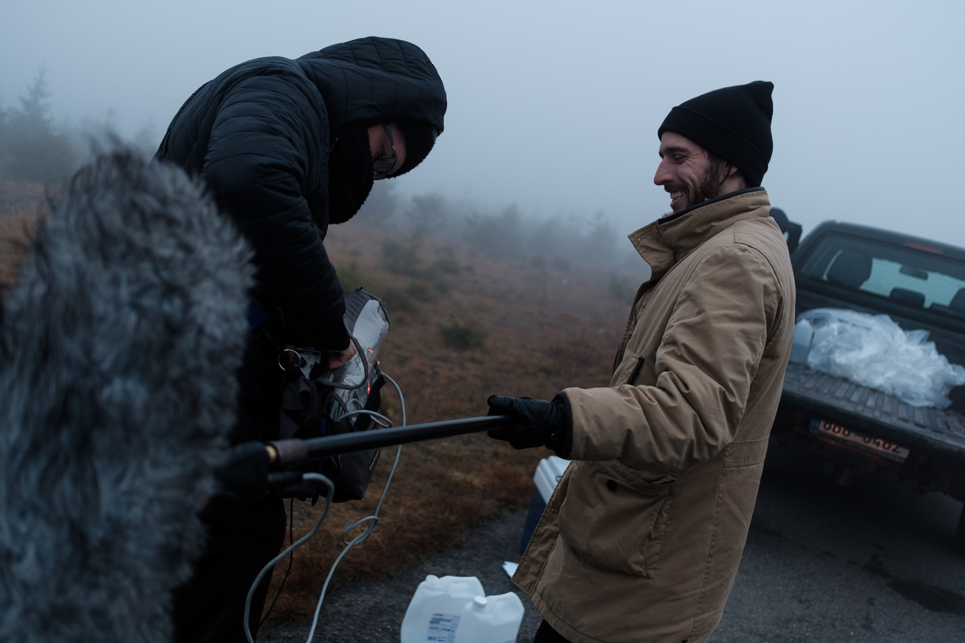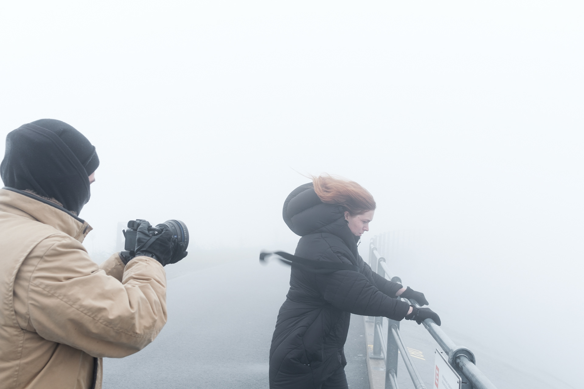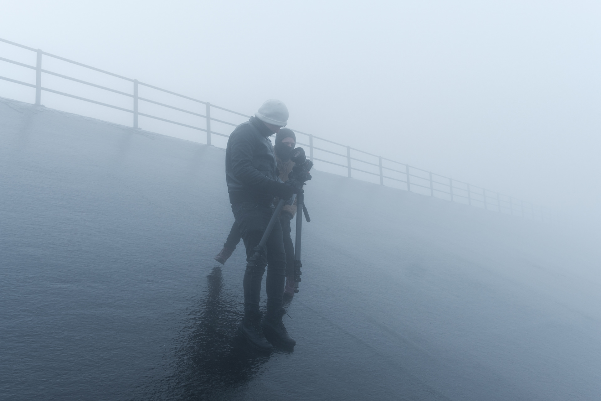 Documentary photos from making of a short film Ócuka. Crew: Milan Mazúr (director), Ester Geislerová (leading actress), Riko Čeko (camera operator), Ondro Hronec (camera operator) Location: Dlouhé stráně, Czech Republic